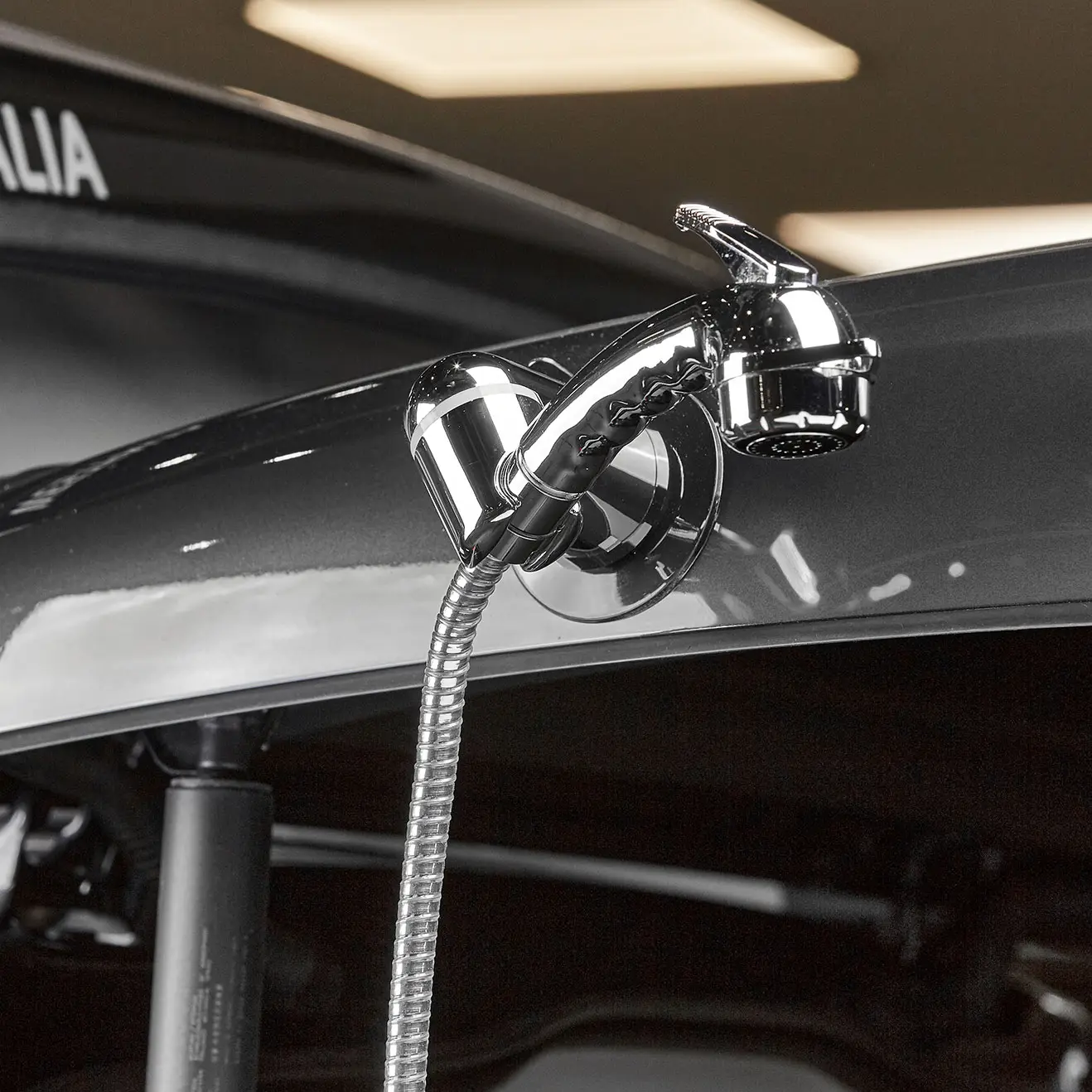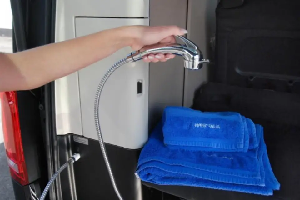 S kapaciteto 40L ter umivalnikom in zunanjim tušem ter namenskim rezervoarjem sive vode.