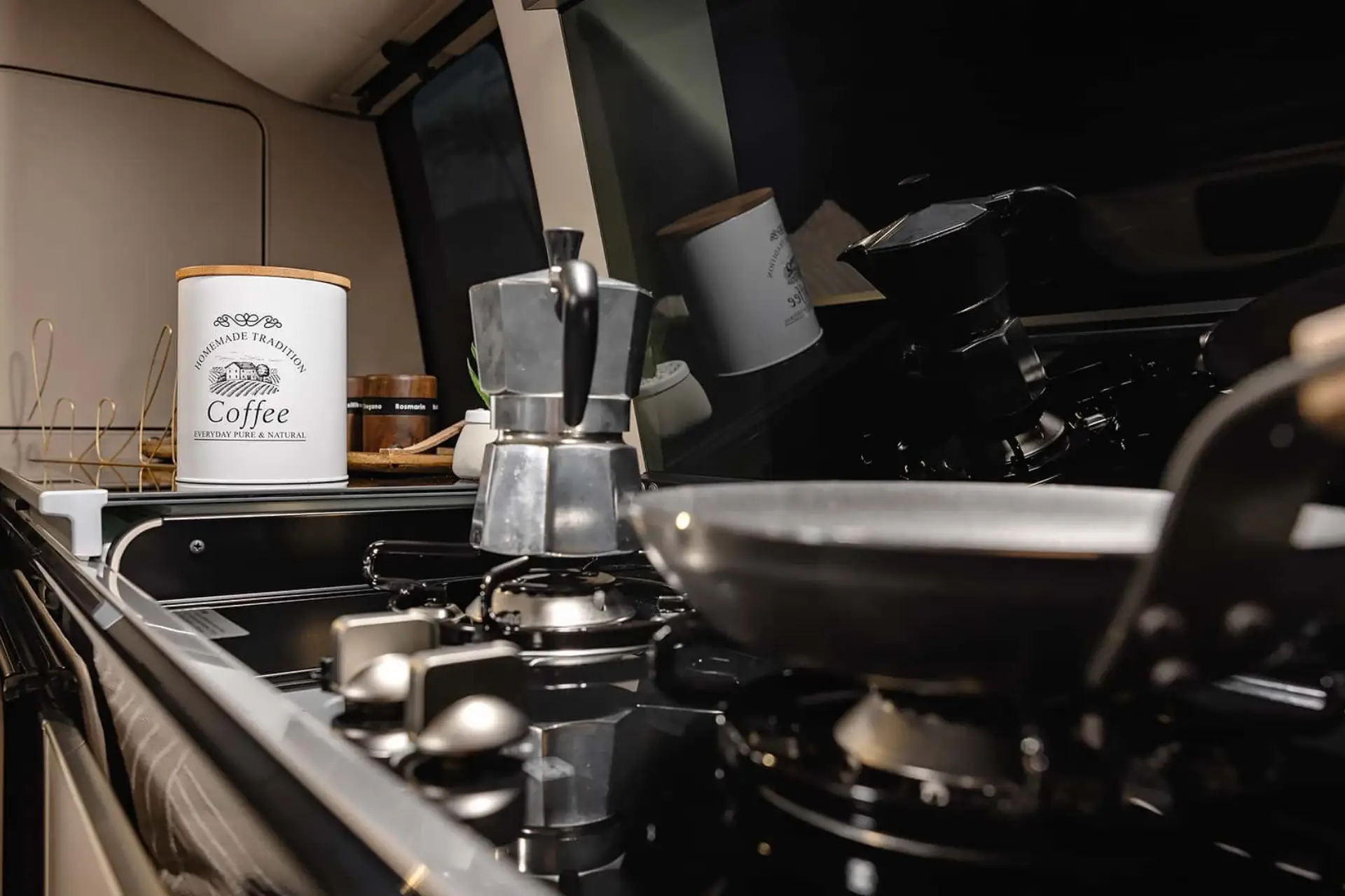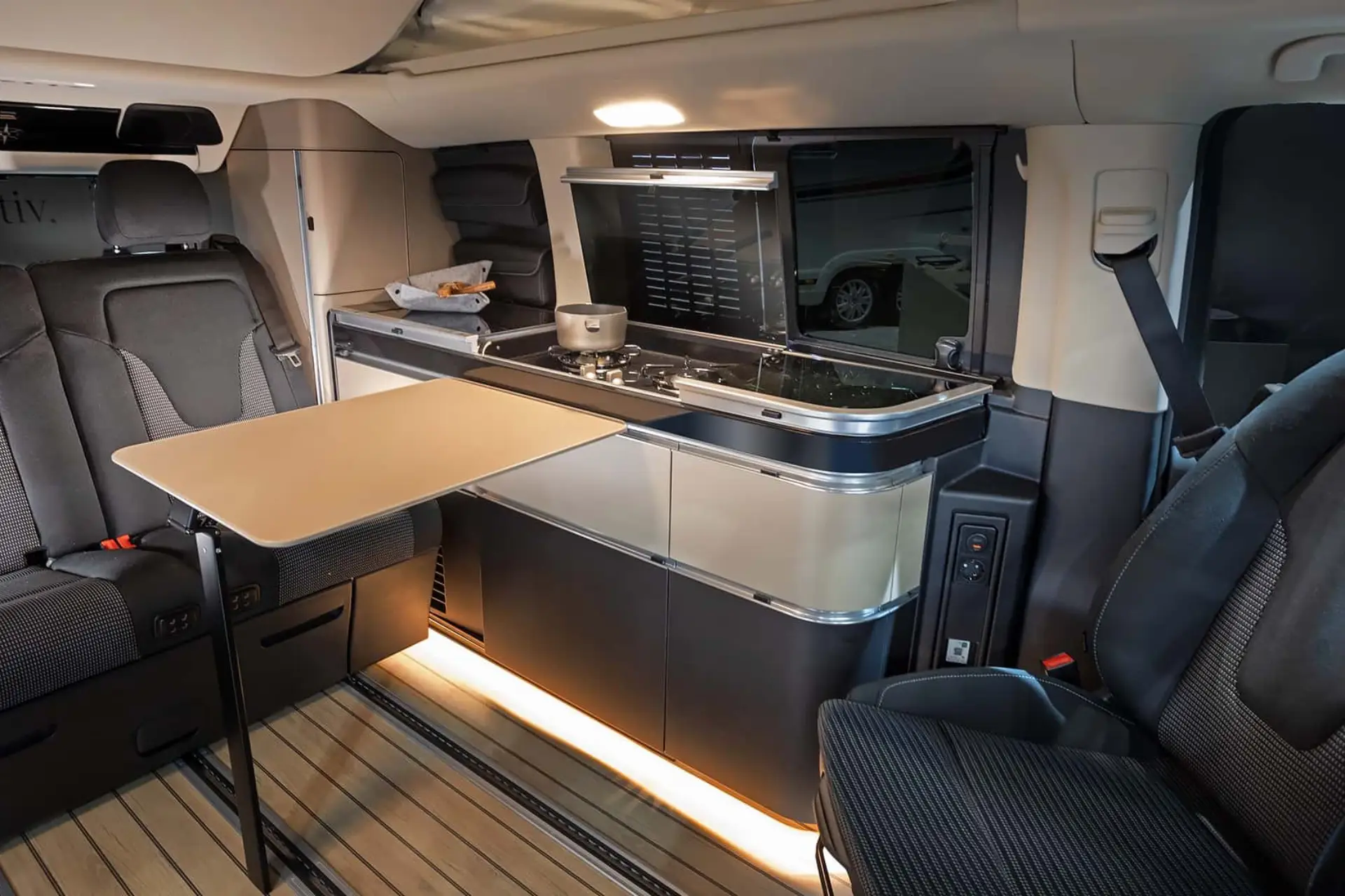 Z dvižno streho in stojno višino v notranjosti, vrtljivima sedeža ter mizo ki se enostavno pospravi je prostornost zagotovljena, izredno prilagodljiva in zadostna za 4 osebe.