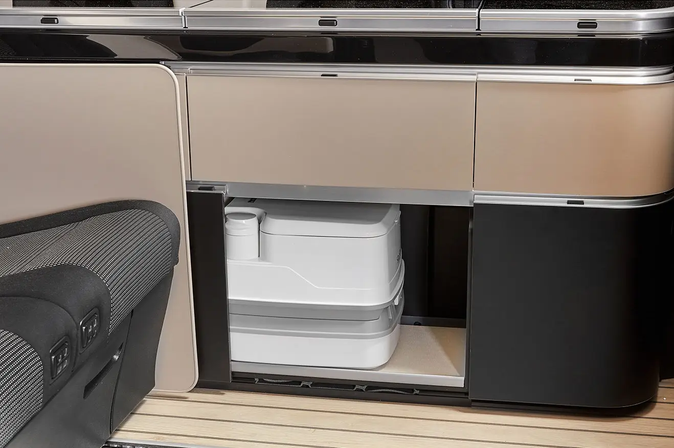 Za še več svobode je Marco Polo opremljen s kemičnim WCjem s splakovanjem in 10L črnim tankom.