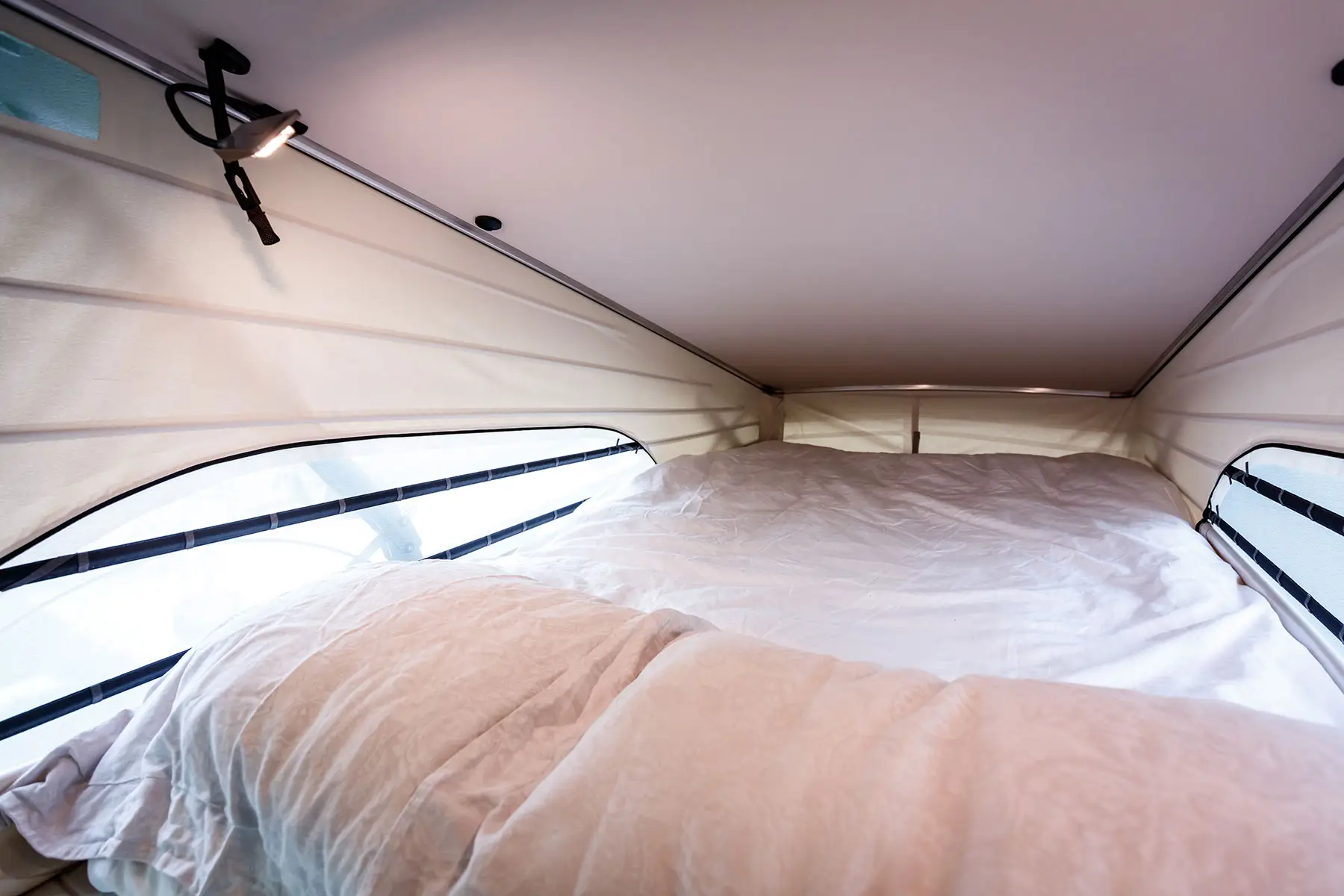 Mercedes Marco Polo je homologiran za 4 osebe med vožnjo in omogoča udobno spanje za 4 osebe (postelja v dvižni strehi + spodnja postelja). Idealen je za pare, manjše družine ali aktivne popotnike.